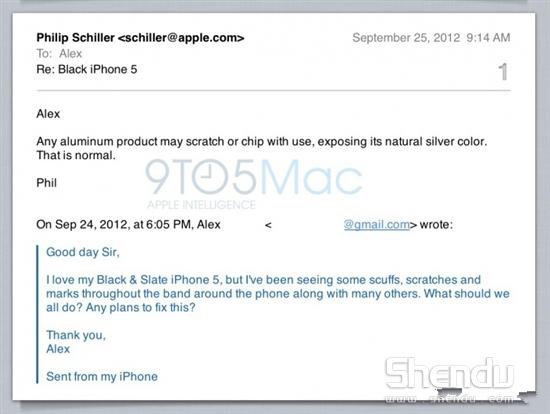越來越多用戶抱怨黑色iPhone 5太容易掉漆,對于這個問題,現(xiàn)在蘋果終于給出了正面回應(yīng),不過在他們看來,掉漆這個問題太正常。最近有用戶向蘋果的副總裁菲爾 席勒發(fā)郵件詢問,為什么iPhone 5黑色那么容易掉漆,而在這個問題的回答上席勒表現(xiàn)的似乎很不耐煩。他表示稱,iPhone 5機(jī)身使用了鋁合金材質(zhì)(后蓋),而這種材質(zhì)在使用過程中出現(xiàn)掉漆等問題十分正常,沒什么大驚小怪的。