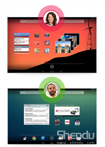 Android4.2繼續沿用Jelly Bean(果凍豆)的名稱,支持平板以及手機設備。Android4.2整體方面與Android4.1保持一致,在一些細節方面有所改進,下面我們就先來看一下Android4.2系統有哪方面的提升。新功能主要包括:·可拍攝全景照片·鍵盤支持滑動輸入·快速設置及賬戶快速切換·Gmail支持文字放大·增加輔助功能:通過手指縮放、平移主屏幕,增加為盲人用戶設計的語音輸出及手勢模式導航·Miracast支持無線顯示共享·可通過Google Now查看Gmail、航班信息、提示重要活動。在iOS6系統中蘋果就在系統中加入了全景拍照的功能,可見目前全景拍照是很多用戶使用頻率非常高的一項拍照方式,所以在此次的Android系統更新當中,加入全景拍照功能也是非常有必要的。