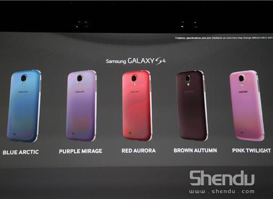 三星在倫敦如期舉行了新品發布會。在這次發布會中,三星除了為消費者們帶來了3款手機、1款相機、4款電腦、1款平板電腦之外,也為Galaxy S4帶來了5種新的顏色選擇。現在,Galaxy S4除了早前的白色和黑色之外,又新增了藍色、紫色、紅色、褐色和粉色這5種顏色。