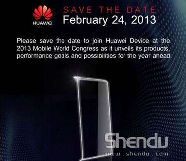 國外媒體SlashGear爆料華為送出MWC2013的邀請函,邀請函顯示華為將在本月24日召開發布會,邀請函上的手機前面板輪廓顯示出去年Ascend P1的輪廓,結合此前各路傳聞,以及華為的產品線布局,華為在MWC2013上為我們帶來的產品很可能是Ascend P2。此外,也有媒體表示華為也將帶來自主研發的八核心移動處理器。