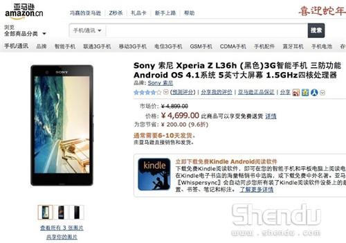 本月初CES2013上索尼為我們帶來了今年上半年的旗艦智能機Xperia Z,在中國大陸的行貨型號為LT36h,預計上市日期則為三月份。而亞馬遜中國(Amazon.cn)在昨晚上架了Xperia Z,售價顯示為4699元人民幣,顯示需要有6-10天發貨,而索尼官方商城則沒有任何動靜。