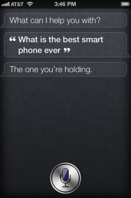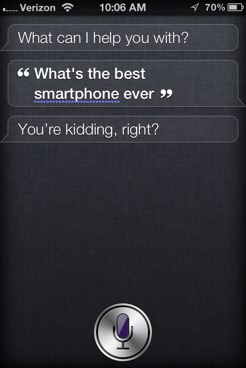 現(xiàn)在當你問Siri什么是最好的智能手機,她會回答,:"iPhone是最好的智能手機。"有時候 Siri還會說 "你不是在開玩笑吧?"或者說"你現(xiàn)在拿著的就是最好的智能手機。"