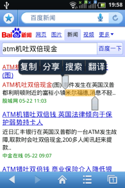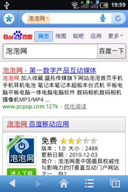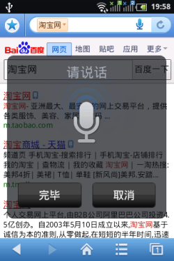 在長虹H5018中內置有多個百度應用,極大程度的方便了用戶的使用。用戶可以通過內置的百度瀏覽器上網,該瀏覽器支持語音搜索功能,點擊搜索欄旁邊的話筒可以激活語音界面,這時說出你想要搜索的內容,就可以讓手機搜索出相關的信息,經過測試,這個語音視頻的準確度還是非常高的。