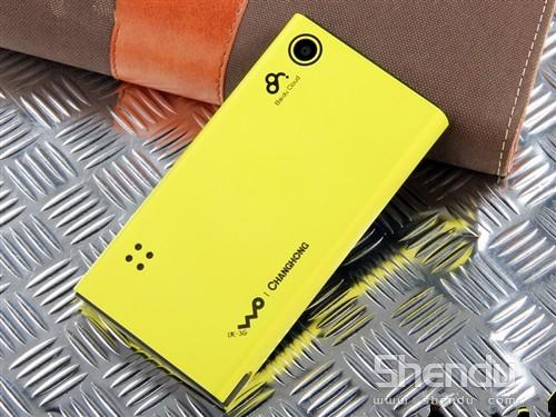 左下方的位置是手機的揚聲器,聲音還是比較洪亮的。在手機背面,我們可以看到百度云的標志以及長虹、沃3G的標志。