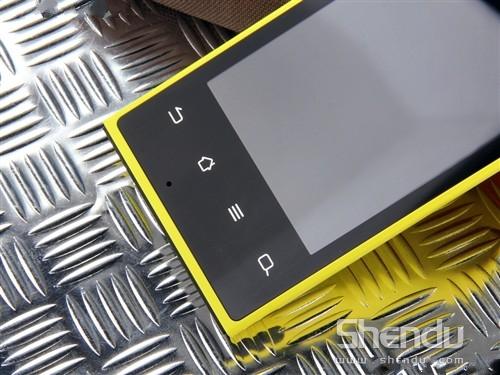 屏幕下方我們可以看到四個Android系統功能按鍵,從左到右依次是返回鍵、Home鍵、菜單鍵以及搜索鍵,這四個觸控區域的面積非常大,便于用戶操作,但是一定程度上會影響到手機的外觀。在功能鍵靠下的位置那個小孔就是手機的話筒了。
