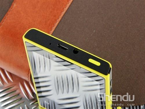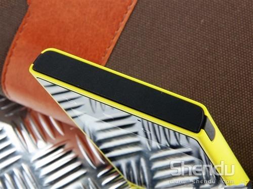 下面我們來看一下長虹H5018的機身四周。在手機頂部從左到右依次是數據線接口、3.5mm耳機接口以及開機按鍵,開機鍵幾乎與手機頂部處于同一平面,按鍵反饋有些弱,如果按鍵再凸出些手感將會更好。