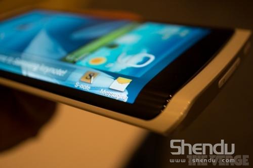 據(jù)悉,三星原型機(jī)屏幕長(zhǎng)寬比例為16:9,支持720p顯示。從正面看,原型手機(jī)只是比普通手機(jī)屏幕多出右側(cè)一片區(qū)域,但是當(dāng)手機(jī)平放時(shí)便可看出機(jī)身右側(cè)屏幕與正面呈現(xiàn)一定程度的夾角。