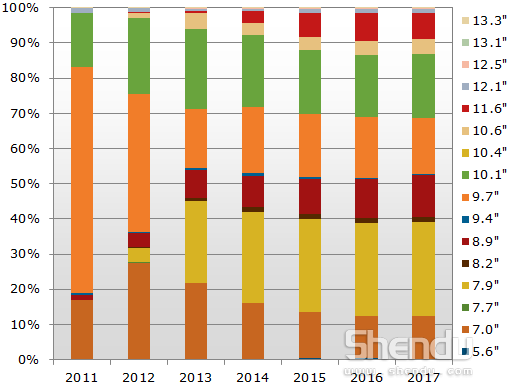 報告指出,今年全球平板電腦銷量將增長64%,主要原因是受到多種平板電腦產(chǎn)品的推動。7至7.9英寸平板電腦今年的全球份額將達(dá)到45%,銷量可達(dá)1.08億臺;與此相比,傳統(tǒng)iPad等9.7英寸平板電腦所占份額為17%,銷量可達(dá)4100萬臺。其他38%則來自其他尺寸的平板電腦,從5.6到13.3英寸不等。