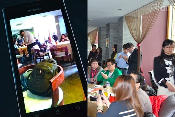 和不少智能手機一樣,P1 的攝像頭也采用了背照式傳感器,在弱光環境下拍攝的照片能夠比別的傳感器清晰、明亮。華為發布會的現場是室內環境,沒有開日光燈這樣的強光,應該屬于弱光環境。我在這樣的環境下拍了一張,從手機上看感覺拍照樣張,感覺比較明亮,可以和我用尼康 D3000 拍下的照片作一個簡單的對比。