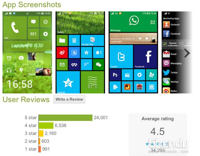 在見過大量的圖標化設計之后微軟推出的“Metro”風格帶來了完全不同的操作方式,而相對來說比較開放的Android平臺上也因此出現(xiàn)了各種WP8主題的存在。其中應用啟動器“Launcher 8”今天正式宣布應用已經(jīng)突破100萬下載里程碑,此外應用也得到了不錯的反響,目前Play上評分為4.5顆星。