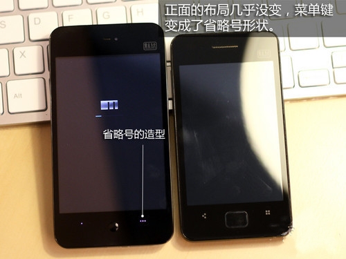 菜單鍵則從四個點(diǎn)變成了更為簡潔的三個點(diǎn),省略號的設(shè)計(jì)也能更好地表達(dá)出“更多選項(xiàng)”的含義。手機(jī)橫置時(shí)按鍵也會跟著改變顯示方向。除此之外,這個LED燈還將根據(jù)按鍵所前界面是否有效進(jìn)行變化提示,例如顯示一個圓點(diǎn)則表示在當(dāng)前界面該按鍵無效,極大改善了Android手機(jī)都存在的菜單鍵“摸黑”使用的情況,這是一個將明顯提升用戶體驗(yàn)的細(xì)節(jié)。