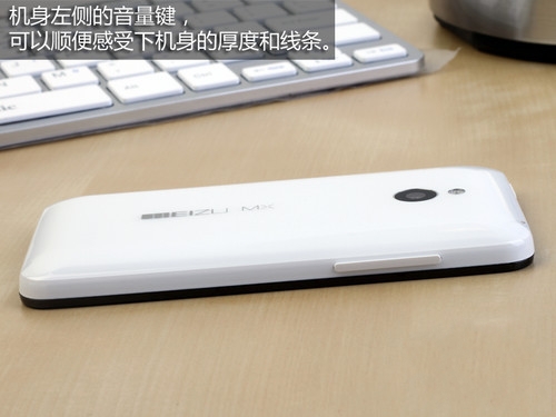 左側(cè)是和整體融合得非常和諧的音量鍵,白色非常討好,金屬邊框也使得機(jī)身更加牢固。而之前M9左右兩側(cè)都有的揚(yáng)聲器如今只在右側(cè)出現(xiàn),雖然是單揚(yáng)聲器,但是魅族做播放器起家,厚實(shí)的功底也保證揚(yáng)聲器的外放音質(zhì)。