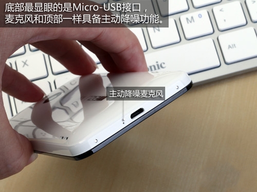 底部有一個Micro-USB接口,不僅可以用來充電和傳輸數(shù)據(jù),更可通過下午將會介紹的MHL連接電視進(jìn)行高清視頻播放。麥克風(fēng)同樣具有主動降噪的功能。