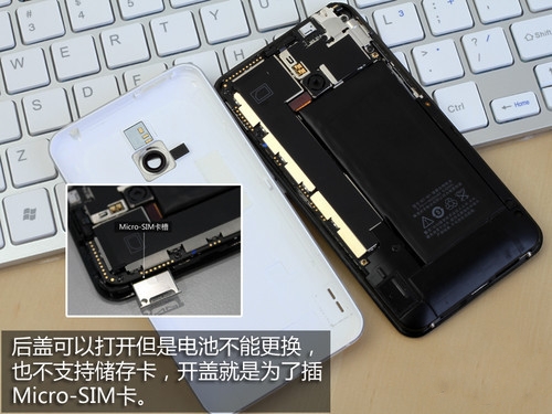 魅族MX是第一臺電池不可更換的手機(jī),這個設(shè)計(jì)和蘋果iPhone 4、諾基亞Lumia 800一樣。并且魅族MX也和這兩部手機(jī)一樣只能用Micro-SIM卡。不過不同的是,MX的后蓋可以打開,我們也就能夠輕易看到它的內(nèi)部構(gòu)造。表面覆蓋著石墨,每個芯片均有屏蔽罩。