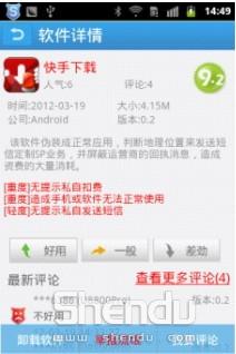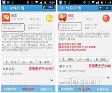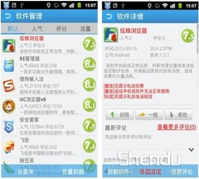 盜版軟件和原版的差距還是很明顯的,首先是文件大小有區(qū)別,另外我們注意到,原版軟件的來源是軟件提供商的名稱,而盜版軟件的來源都是Android。在這里小編再次呼吁大家,為了保護自身的利益,一定要安裝可靠的手機安全管理軟件。