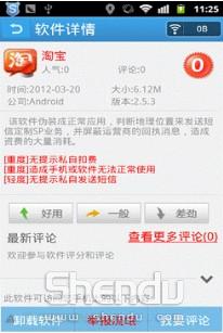 據(jù)悉,該軟件可以在后臺悄悄運行,控制用戶手機自動聯(lián)網(wǎng),去指定服務(wù)器去獲取扣費指令,通過多次小額的短信指令牟利。因為都是小額扣費,所以用戶如果不打出話費詳單查詢,一般很難發(fā)現(xiàn)。